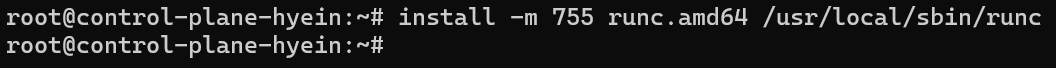 - install -m 755 runc.amd64 /usr/local/sbin/runc 명령어를 입력하여 runc.amd64를 /usr/local/sbin/runc 디렉토리에 설치합니다.
