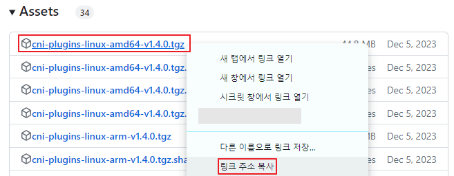 - Step 3: Installing CNI plugins에서 cni plugin을 설치하기 위해 https://github.com/containernetworking/plugins/releases로 이동합니다.