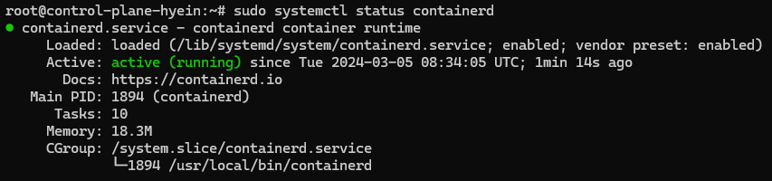 - sudo systemctl status containerd 명령어를 사용하여 Containerd의 상태를 확인합니다.