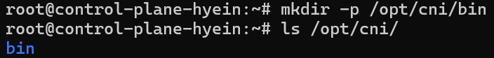 - Step 3의 지침을 따르기에 앞서 mkdir -p /opt/cni/bin 명령어를 통해 /opt/cni/bin이라는 디렉토리를 생성합니다.
