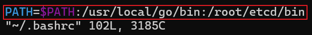 - vi ~/.bashrc 명령어를 입력한 후 앞서 추가했던 PATH 뒤에 :/root/etcd/bin를 입력하여 /root/etcd/bin 디렉토리를 PATH에 영구히 추가합니다.