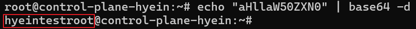 - echo "aHllaW50ZXN0" | base64 -d 명령어를 입력하여 디코딩하면 쉽게 value 값을 확인할 수 있습니다.