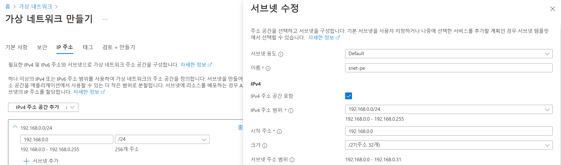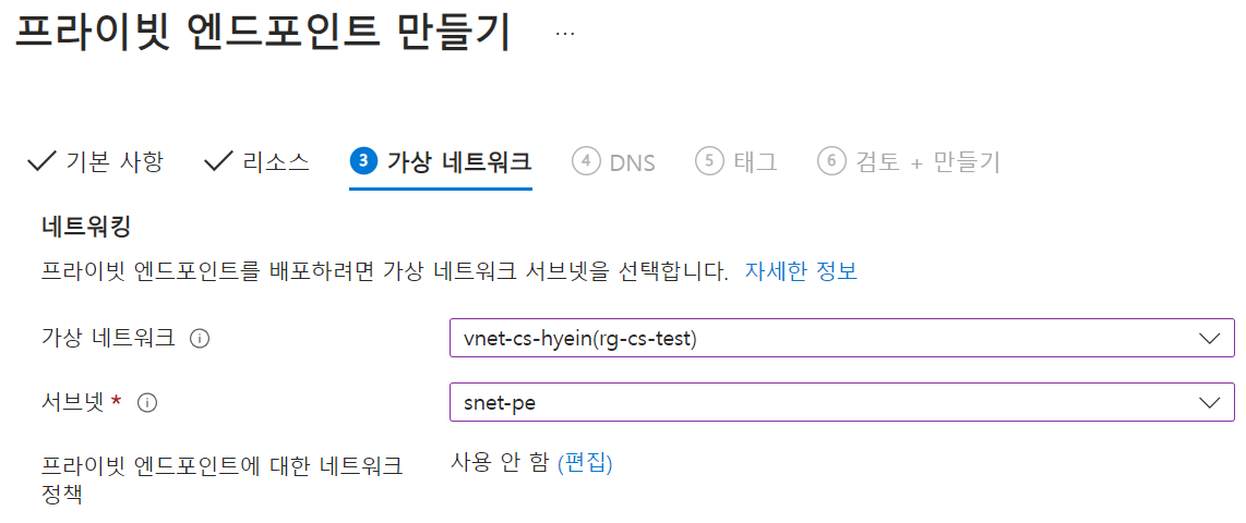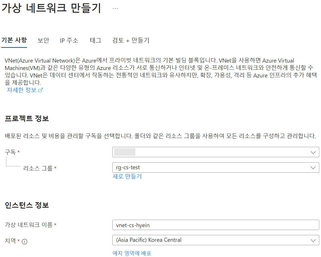 Private Endpoint를 생성하기 위해서 가상 네트워크를 먼저 생성합니다.