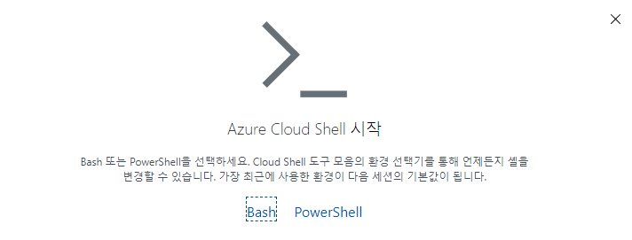 Azure Cloud Shell 시작 창이 표시되면 [Bash]를 클릭합니다.