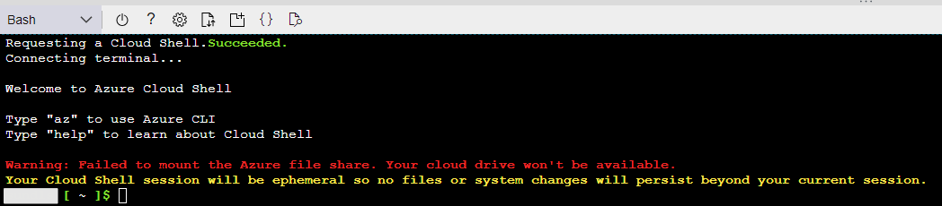 이 경우 Azure CLI 명령어는 사용할 수 있으나 git clone을 통해 가져온 파일의 경우는 Azure file share에 영구히 저장되지 않게 됩니다.