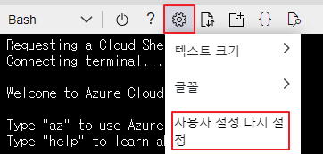 Cloud Shell을 실행한 후 ⚙️ 버튼을 클릭하여 [사용자 설정 다시 설정] 버튼을 클릭합니다.