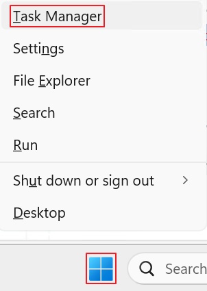 - 윈도우 로고 키를 마우스 우클릭한 후 Task Manager를 클릭합니다.