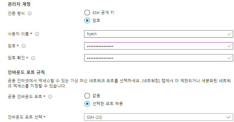 가상 머신 생성이 완료되었으면 공인 IP로 접근합니다. (ssh hyein@{vm 공인 ip})