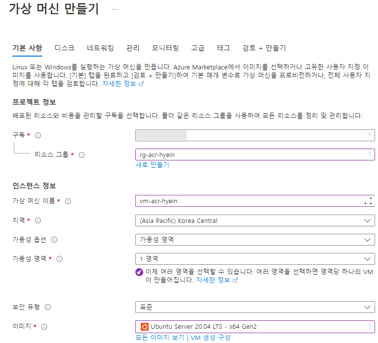 - 멀티 구독인 경우 az account -s "구독 명"을 입력하여 Azure Container Registry가 존재하는 구독으로 활성 구독을 변경해 줍니다.