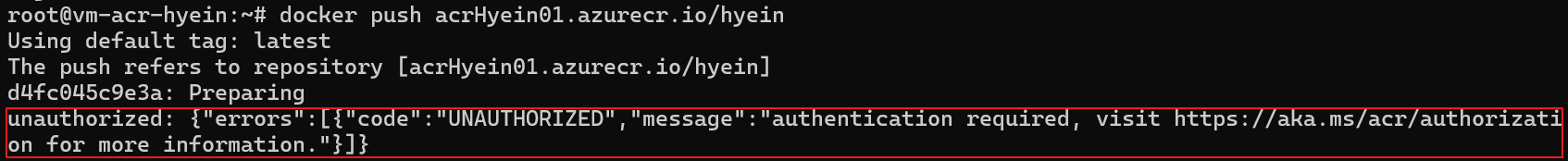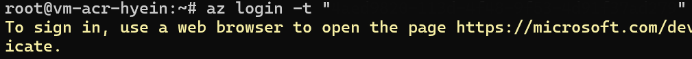- acrHyein이라는 ACR에 로그인합니다. ( az acr login -n acrHyein01 )