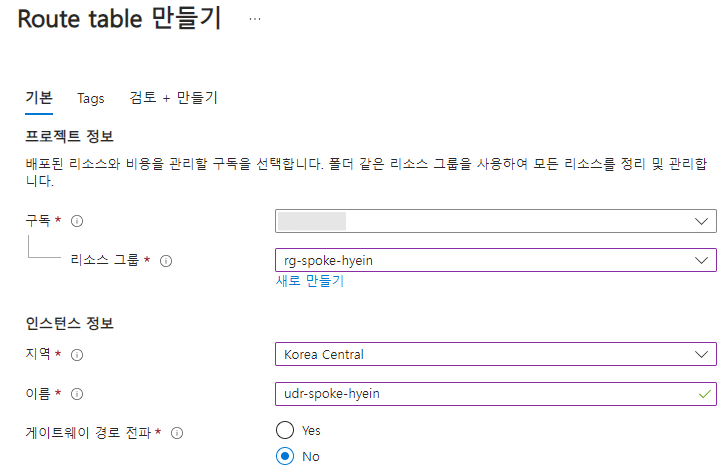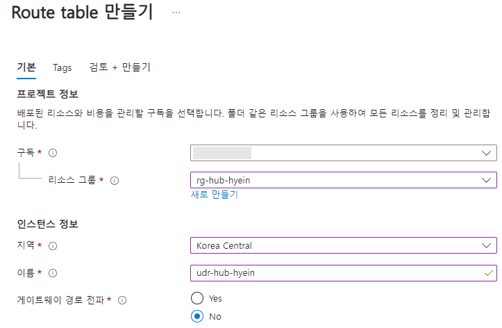 해당 설정이 활성화되어 있으면 라우트 테이블을 자동으로 전달해 주기 때문에 VPN이나 ExpressRoute를 통해 Azure의 네트워크로 갈 때, 이 경로에 대해서 별도의 구성을 하지 않아도 됩니다.