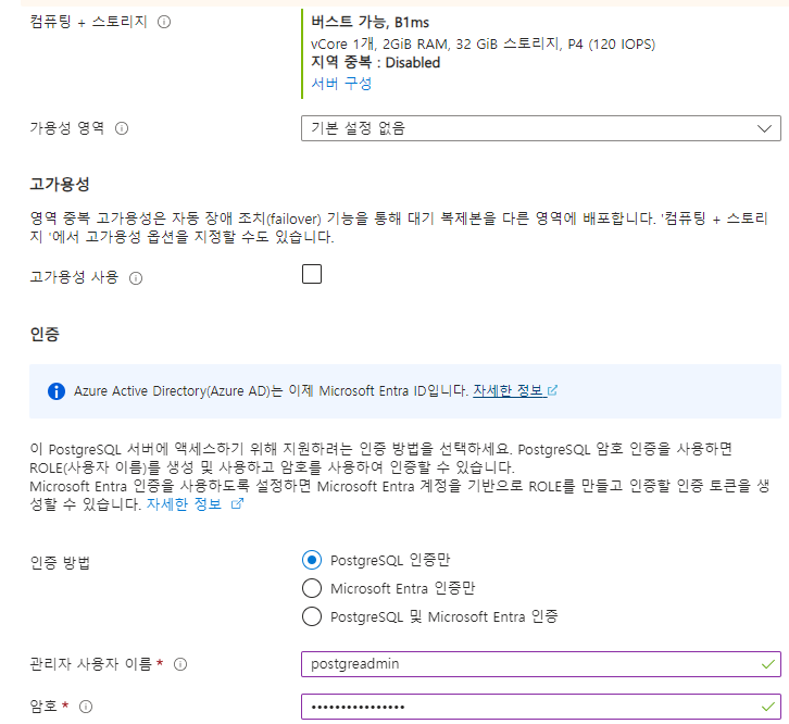 2.6 Azure Database for PostgreSQL Flexibel Server 배포