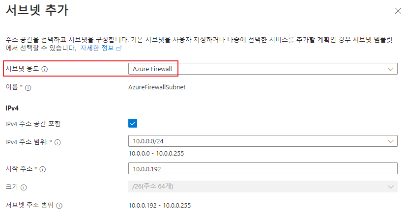 서브넷 용도 중 [Azure Firewall]을 선택합니다.