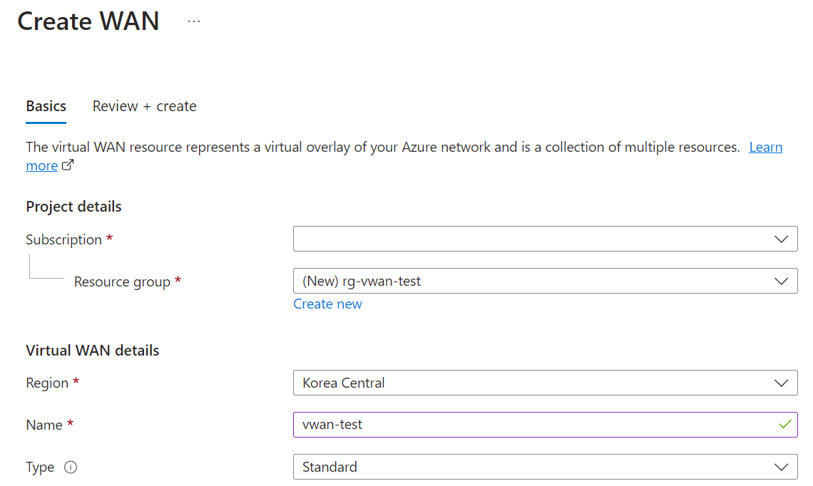 Region : Korea Central # Azure Virtual WAN requires region for resource management but it is a global resource