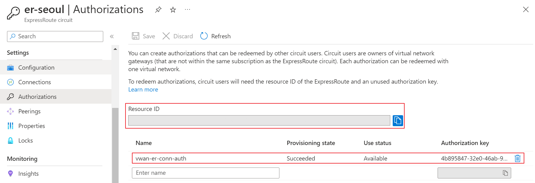 Shared Key : # Authentication key required if you want to use ExpressRoute Circuit in another subscription