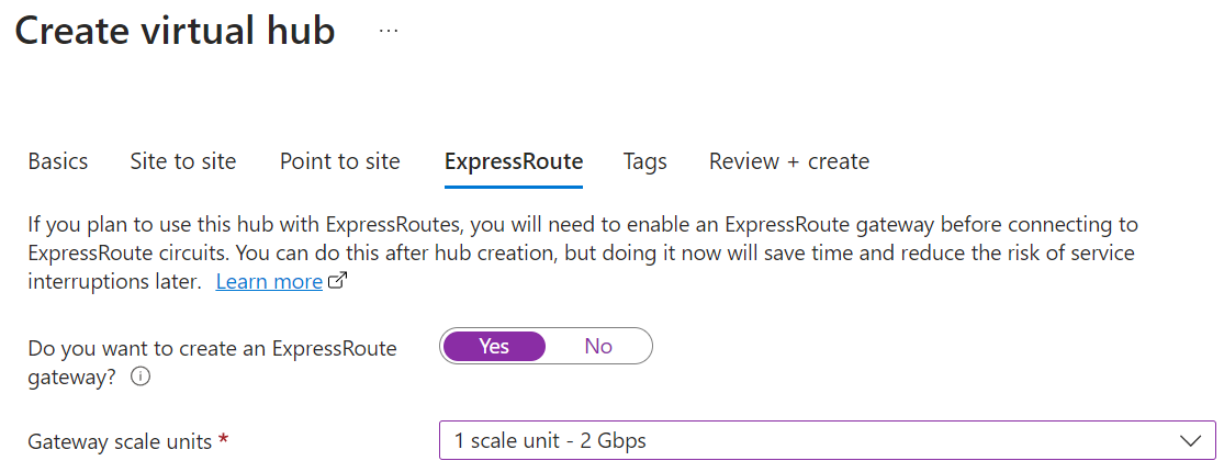 Virtual hub capacity : 2 Routing Infrastructure Units, 3 Gbps Router, Supports 2000 VMs