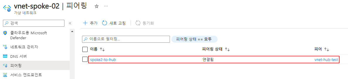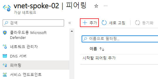 - vnet-spoke-02 > [설정] > [피어링] > [+ 추가]