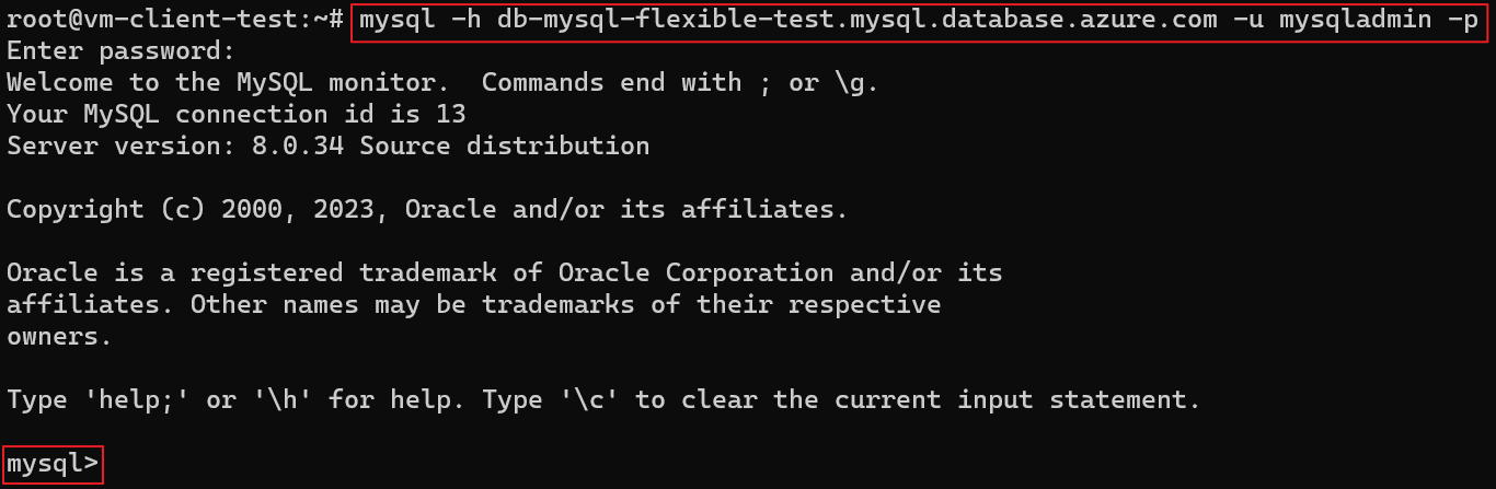 - Spoke 2 대역의 MySQL Flexible Server 접근을 위한 MySQL Client를 설치합니다. (명령어 하기 박스 참고)