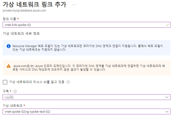 링크 이름 : vnet-link-spoke-02 # 원하는 가상 네트워크 링크 이름 입력